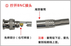 安装监控摄像机,提高生活乃至工作的安全性,并且从视频监控BNC接头安装的过程中,享受到DIY的乐趣,这应该是枯燥中可以体会到的一件趣事。所以,用户们一定要按照下图中的一步步来,不要急,以免因为步骤出错,造成视频图像不出现、受干扰、不清晰、雪花点等等问题。