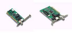 图所示的是两款总线接口分别为ISA和PCI的BNC接口网卡。