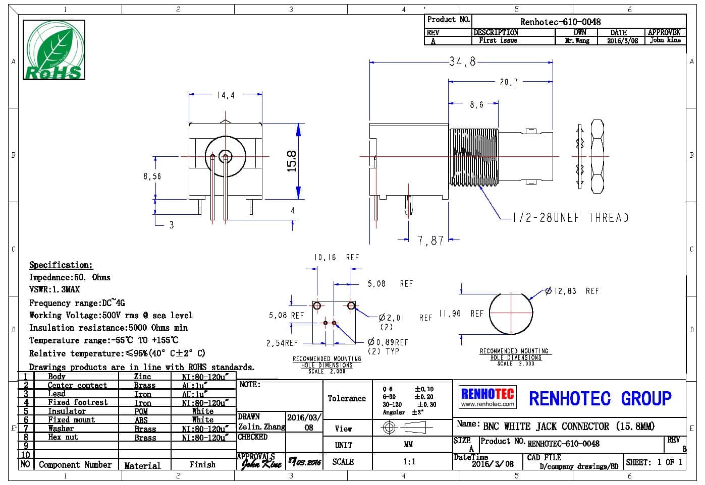 | 中心接触电阻 | ≦ 1.5 mΩ (Milliohms max.) |