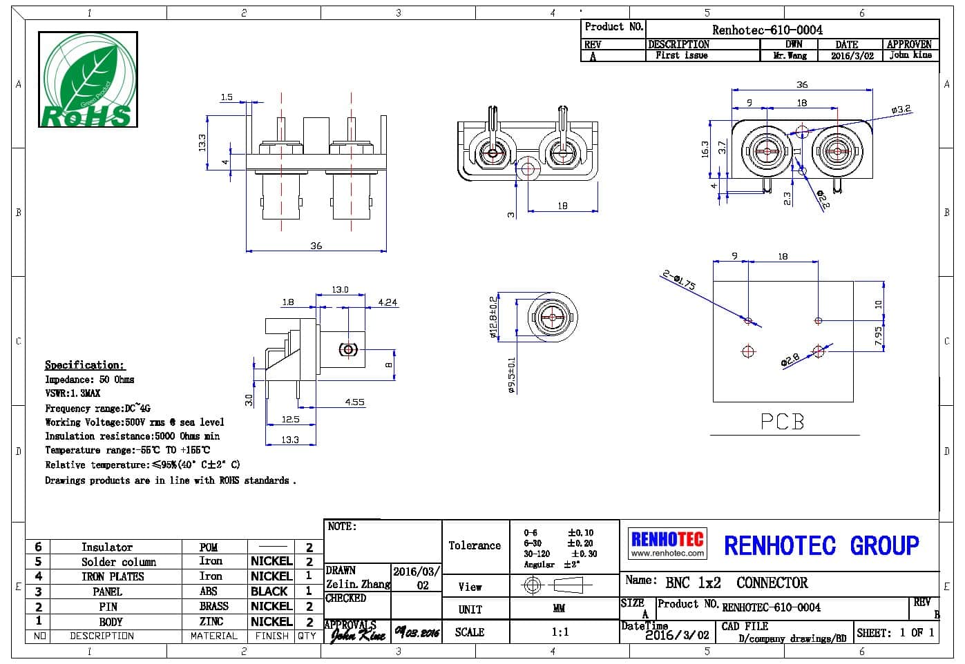 | 频率范围 | 50 ohm 为 0~4 GHz |