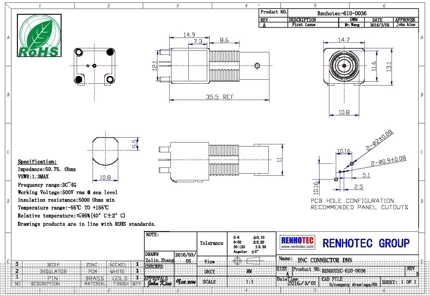 | 频率范围 | 50 ohm 为 0~4 GHz |