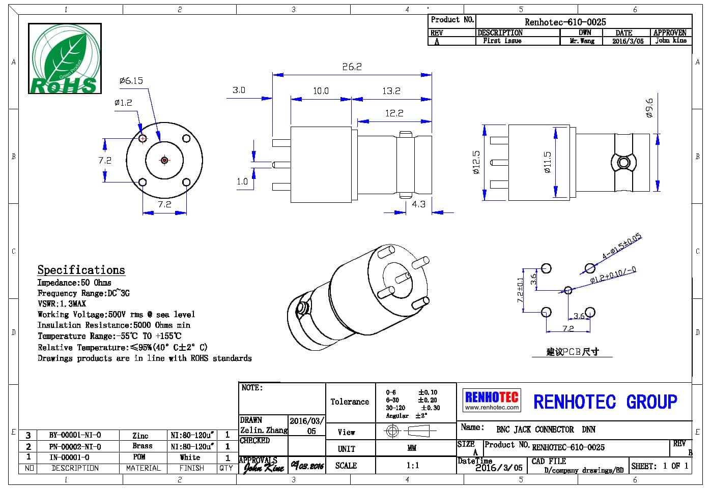bnc 连接器 射频同轴直式母头锌合金 PCB电路板