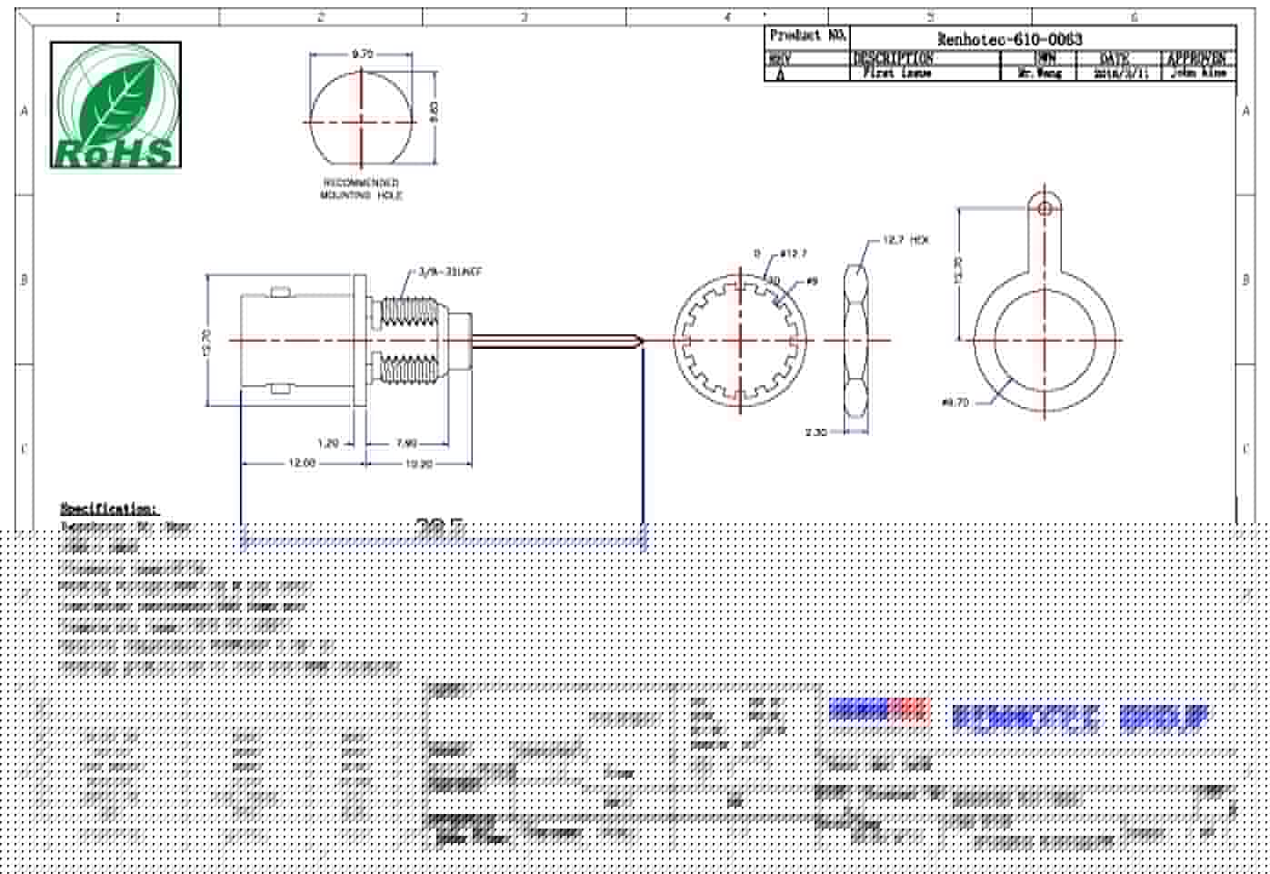| 电压驻波比 | 直式 ≦ 1.22/3GHz / 弯式≦ 1.30/3GHz |