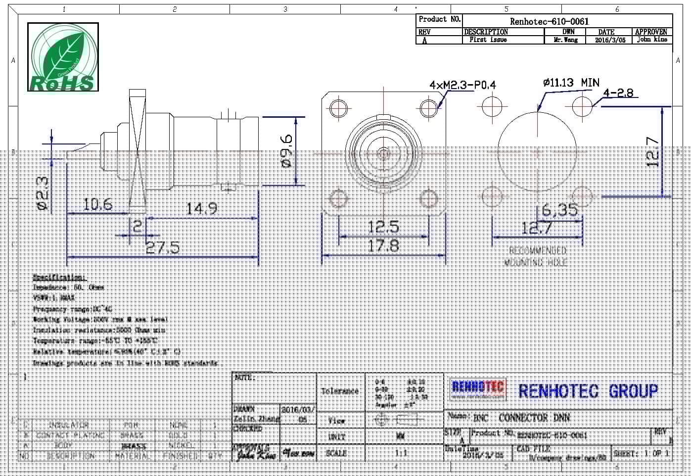 | 频率范围 | 50 ohm 为 0~4 GHz |