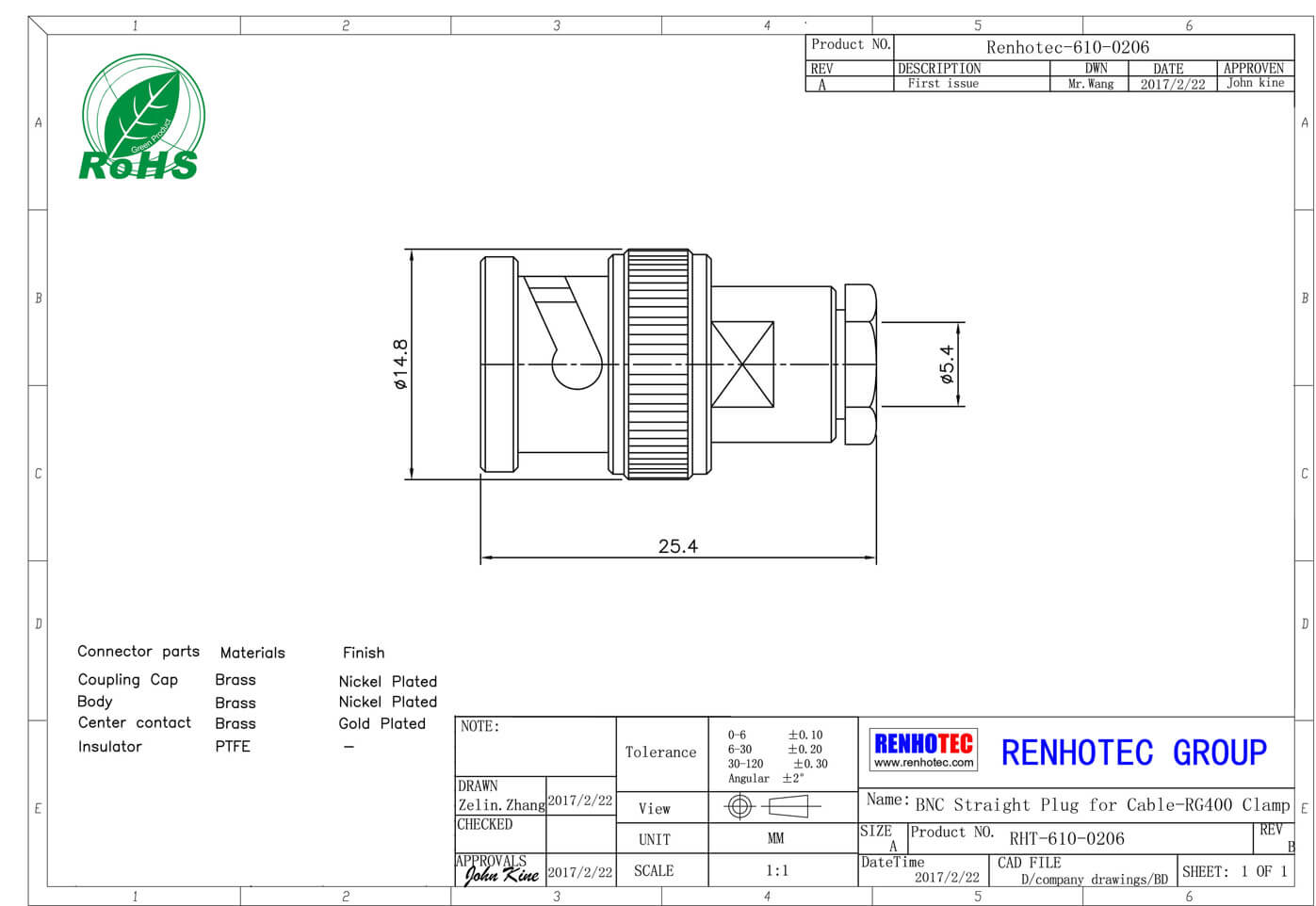 标签:直式射频同轴BNC 50欧姆公头 电缆连接器