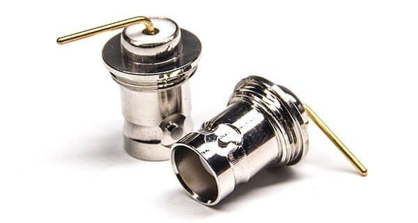 弯式BNC连接器母头带针短螺纹卯压式接PCB板