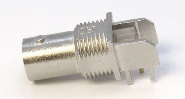BNC连接器镀镍弯式母头穿孔式接PCB板厚度8mm