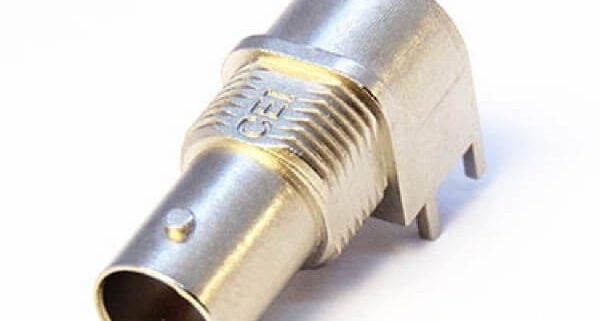 75欧BNC母头连接器弯式前锁穿墙镀镍插孔接PCB板