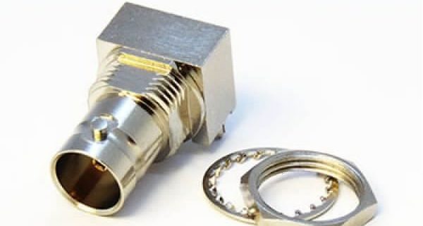 板端BNC接头90度弯式母头射频同轴连接器插孔75欧姆镀镍