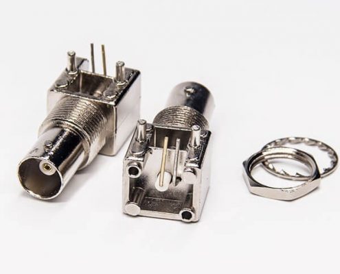 弯脚bnc连接器母头90度穿孔插PCB板