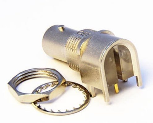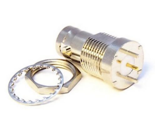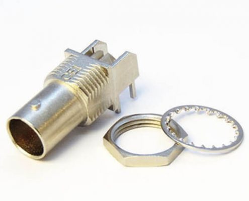 PCB插板式BNC插座母头90度连接器前锁穿墙镀镍