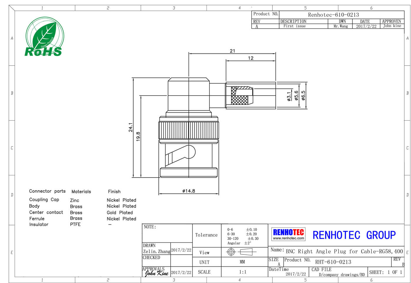 The post 弯式BNC射频同轴线缆连接器公头50欧姆 appeared first on BNC接头网.